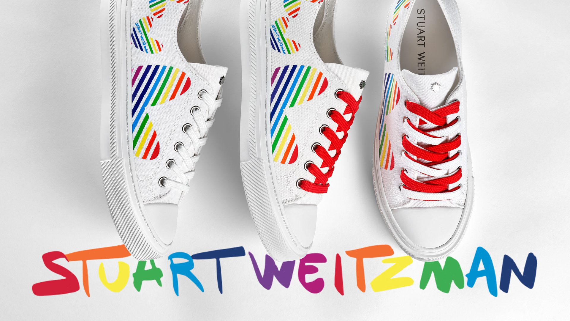 Stuart Weitzman – Step into Pride Month with these colorful kicks from Stuart Weitzman. The Ollie Heart Sneakers are fun and flashy, celebrating individuality this Pride season. Proceeds from the limited edition sneakers benefit the It Gets Better Project.
