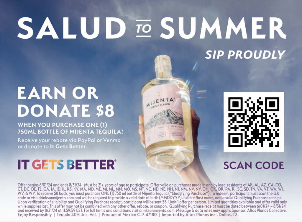This Pride, raise a glass to the experiences that make you unique and the people that love you just the way you are. Certified B-Corp Mijenta Tequila will be donating a portion of proceeds from a rebate program to It Gets Better.
