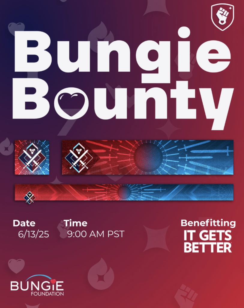 Through sales of Bungie’s annual Pride collectible pin and Pride Month exclusive Destiny 2 emblem, the Bungie Foundation has raised well over $600K for It Gets Better and for LGBTQ+ youth since 2020. This year, Bungie has also made It Gets Better the non-profit beneficiary of “Bungie Bounty for Good,” a livestream fundraiser that converts points into dollars to do good for queer youth around the globe.