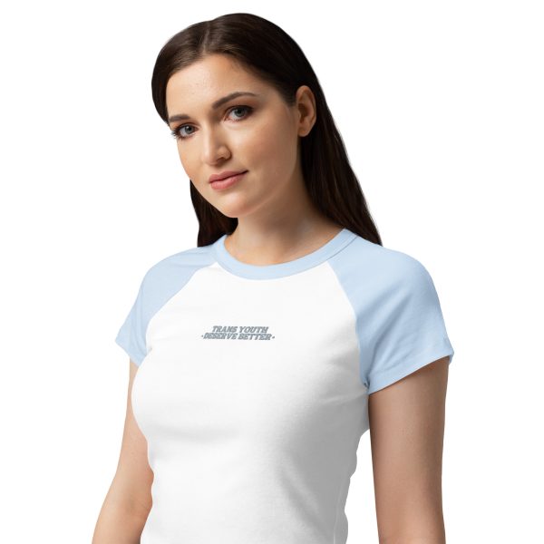 Soft, sporty, and easy to style—this baby tee updates a classic baseball-inspired design. With its fitted cut, mid-length body, and soft ribbed texture, it pairs effortlessly with jeans, shorts, or joggers for a casual, flattering look.