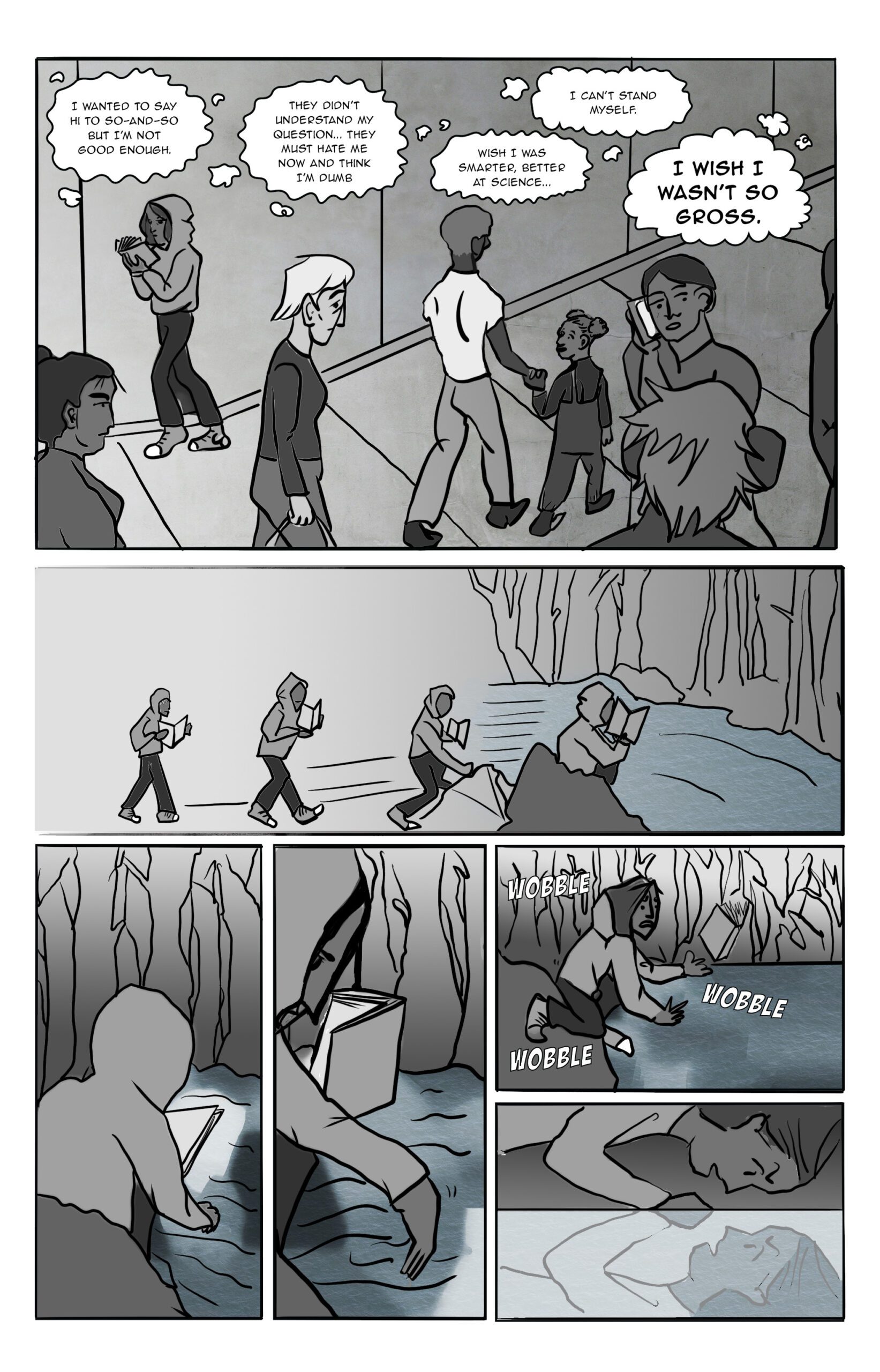 “Astor, the protagonist, is a young teenager who struggles with self-doubt and insecurity. While walking with their nose in a book, Astor falls into a pond which transports them into a maze of which they must escape, and face the darker aspects of the realm.”